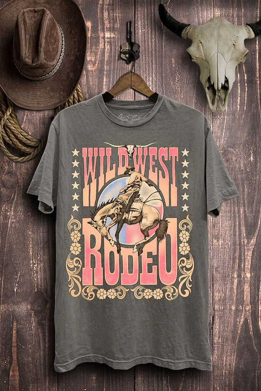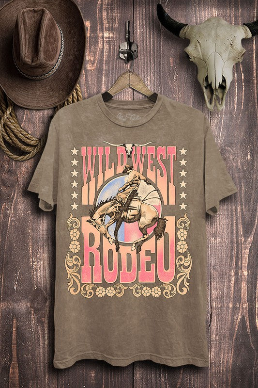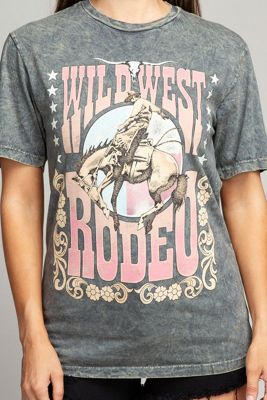 Embrace a vintage wild vibe with this Mineral Washed Graphic Tee. The short sleeves and regular fit ensure comfort, while the fun print adds a stylish flair to any outfit. Perfect for everyday wear with a touch of western charm!